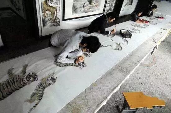 早些年在王公庄村,即便是“虎王”画家,年收入也不过几万。但在政府介入,推广画虎村品牌后,农民画家的收入实现了十几倍甚至几十倍的暴涨。