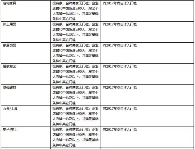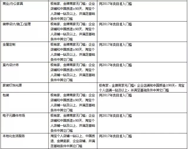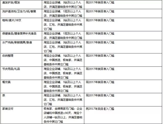 五、淘宝商家除满足以下准入门槛外,还需确认此类目是否为农村淘宝开放类目。