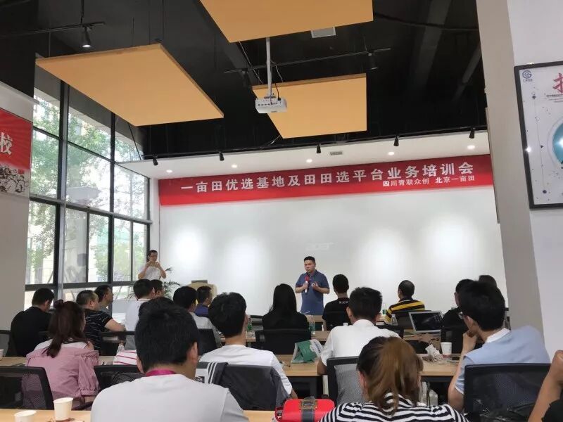 2018年5月19日四川省青联众创电子商务有限公司联合北京一亩田新农网络科技有限公司在广安区电子商务公共服务中心共同举办了关于一亩田优选基地和田田选推介专题培训会。