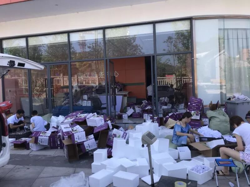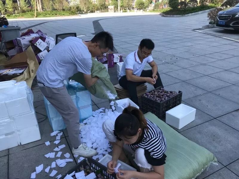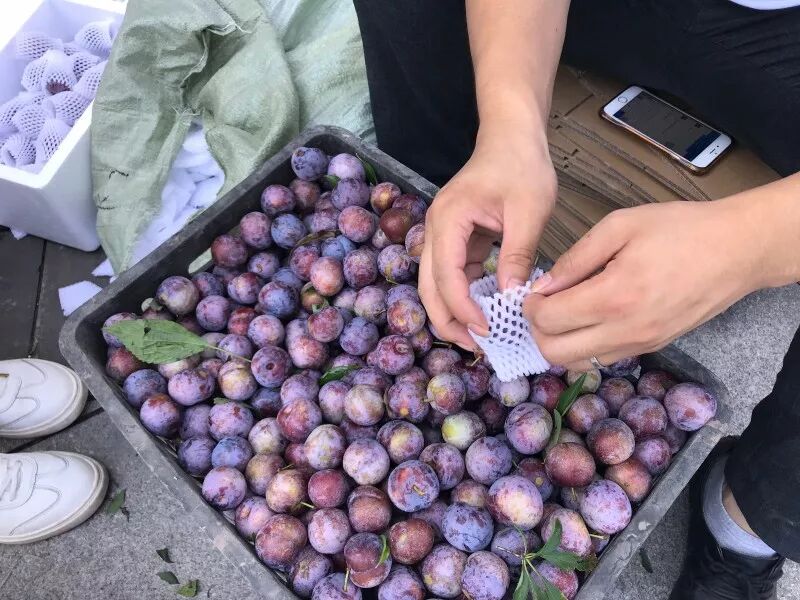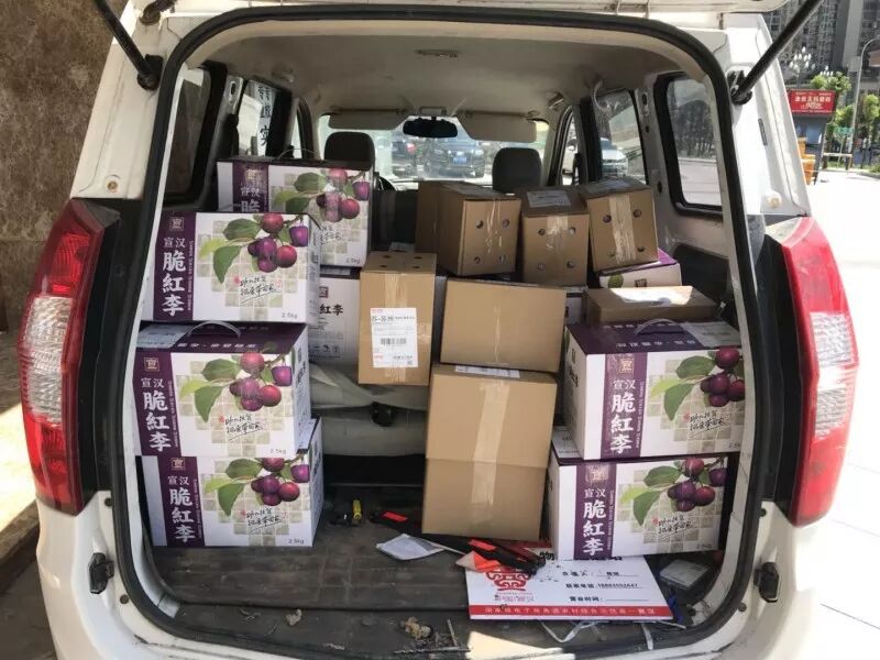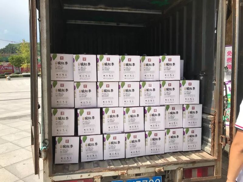 包装好的“宣汉脆红李”,省外由邮政航空、省内由汇通当天18:00点就往全国各地的配送。