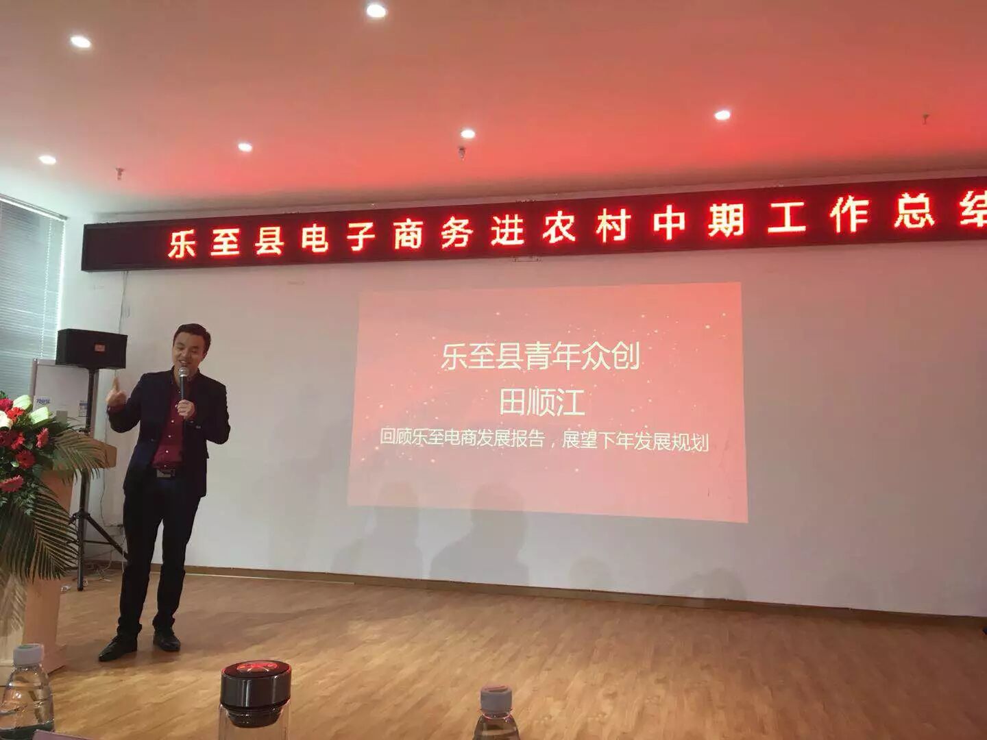(乐至县商粮局副局长全水华致词) (乐至县阿里巴巴农村淘宝负责人王旭) (乐至县青联众创田顺江发言) (颁奖仪式、联谊) 通过村淘与青联众创服务站点相结合联动模式,顺利推进项目向前发展;通过奖励优秀电子商务人才,营造良好电子商务发展氛围,鼓励更多年轻人创业,转型升级乐至县农村经济发展模式,提升经济不断向上增长;让村民通过这些创业者享受到更多的生活服务和便捷!农村电商,我们一直在路上!