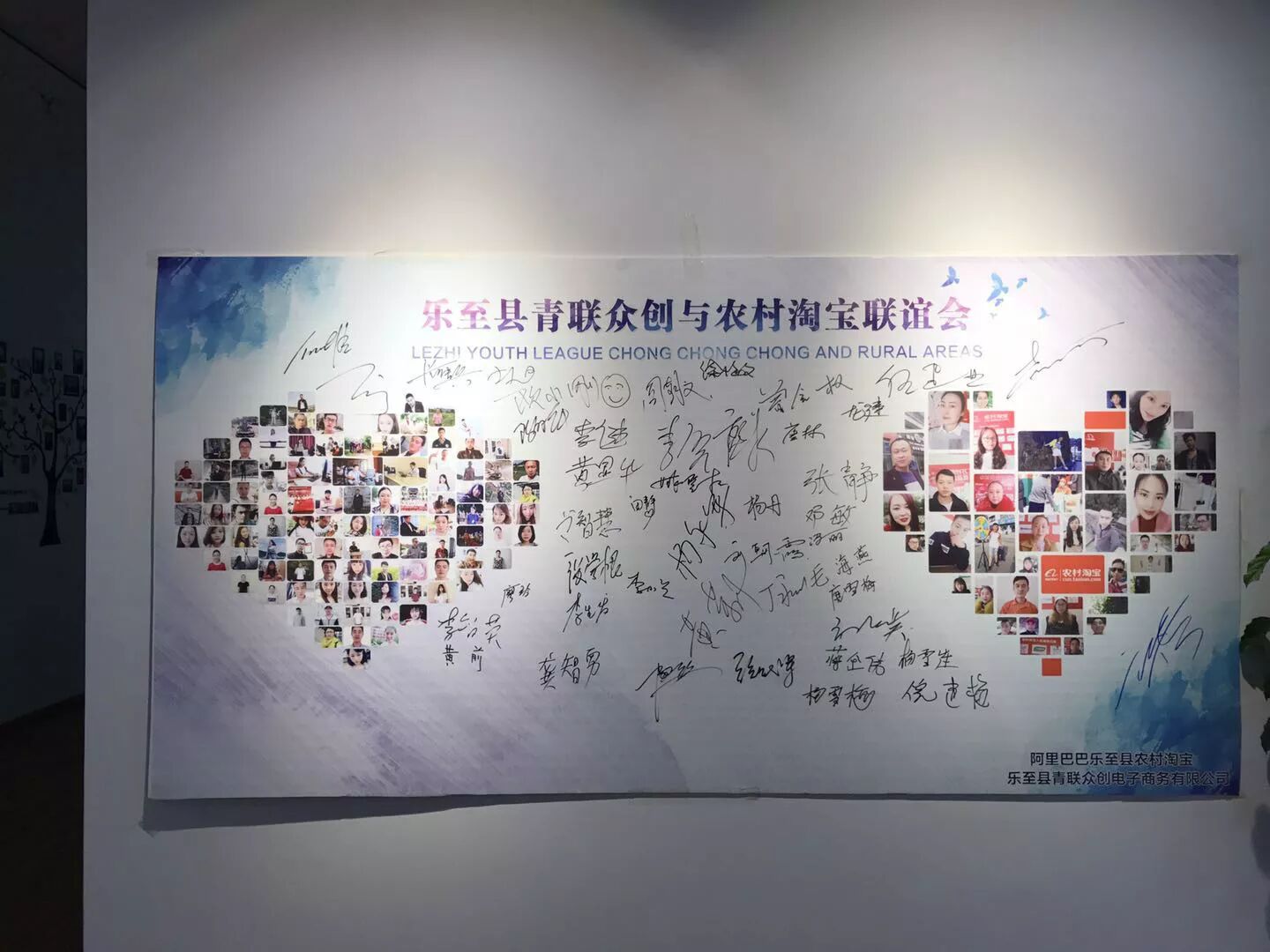 为了更好的推进电子商务进农村这一国家级项目,同时也展现出政府对乐至县电子商务发展的重视,以及对乐至县电子商务人才创业的关注,和对电子商务给老百姓带来的便捷的关心,2017年11月30日在阿里巴巴农村淘宝入驻乐至开业一周年之际,乐至农村淘宝在乐至电商公共服务中心举办了乐至县农村淘宝一周年庆祝活动。 (青联众创与农村淘宝联谊会签到)