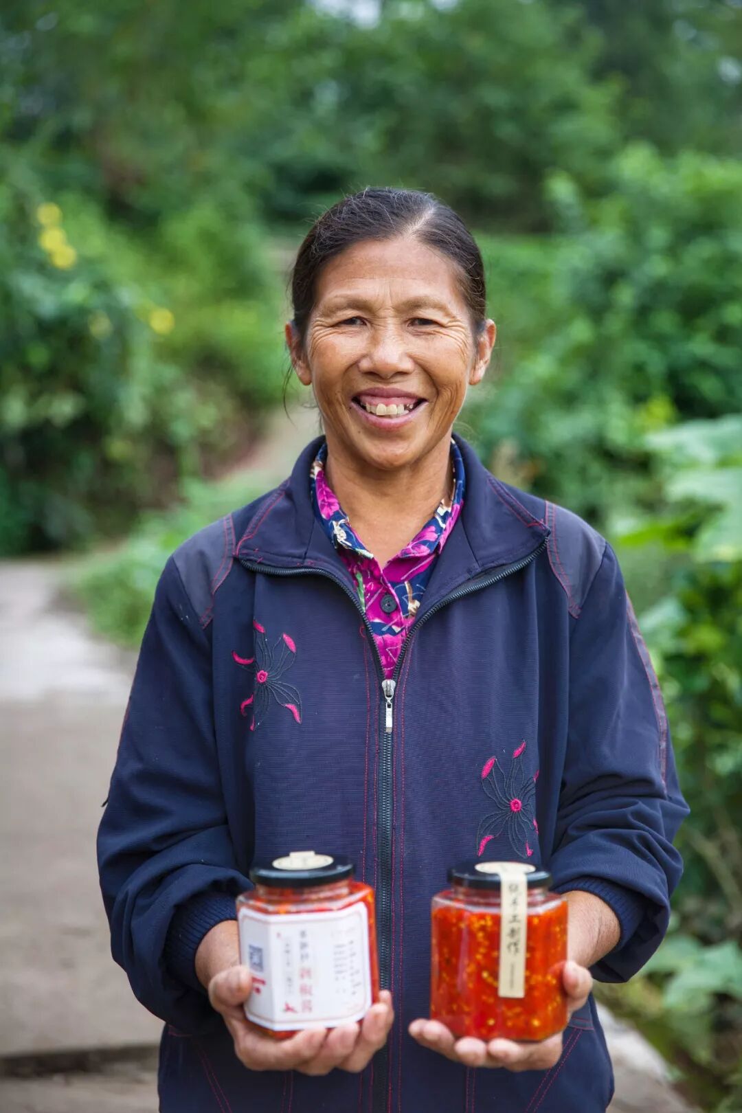 革新村六组的贫困户陈明兰,在丰收大会上被评选为“电商明星”,一下子就领了2000多块钱的红利。63岁的陈大姐拿到她辛辛苦苦做剁椒酱赚的这2000多块钱,乐的合不拢嘴。“小金书记说做剁椒能赚钱,开始我还以为他在哄我,没想到是真的。”