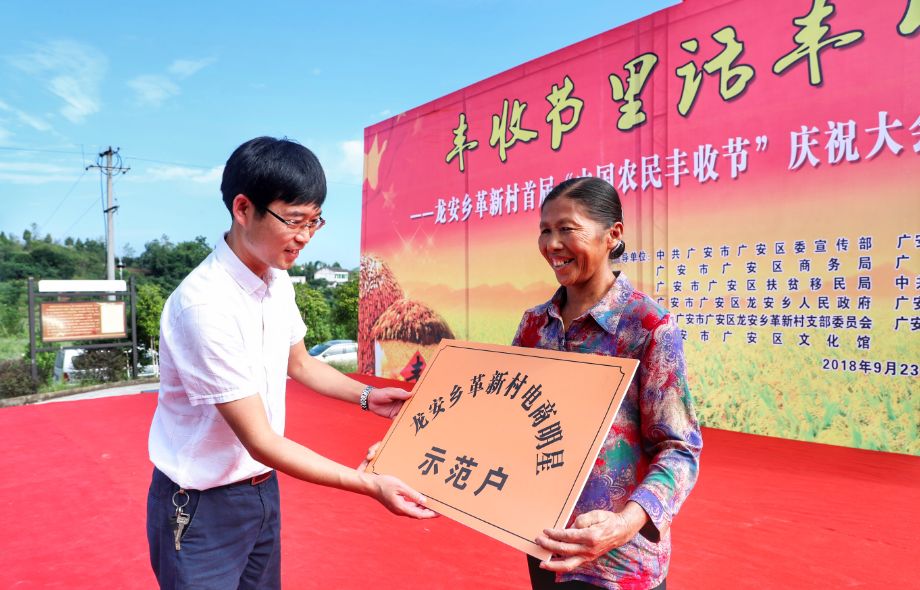 为了响应党中央设立“中国农民丰收节”的英明决策,展现商务扶贫成果,激发贫困村民致富奔康的内生动力,商务部派驻“小平故里”四川广安的扶贫干部与当地干部群众一起,在定点帮扶的贫困村革新村,搞起了一场别开生面的“丰收大会”。