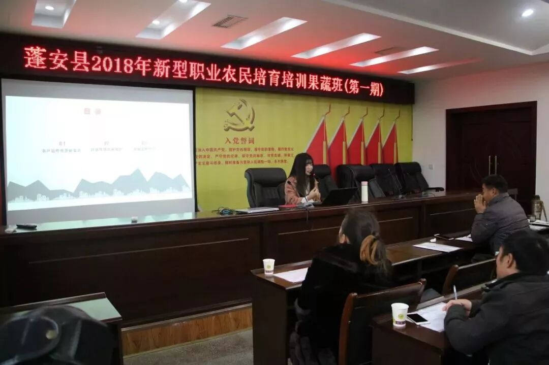 为加快我县农业现代化步伐和促进农民增产增收,为我县发展特色现代农业提供人才支撑,培育壮大新型农业经营主体,12月28日,蓬安县电子商务公共服务中心(以下简称蓬安电商)受蓬安县农牧业局果蔬站邀请,全面开展蓬安县2018年新型职业农民培育电商专题培训会,来自全县各柑橘种植大户、专业合作社等共计约50名学员参加培训。